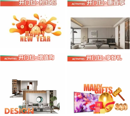 值得一提的是,此次“財年開門紅”活動中,奧華針對2024年度春季新品,推出了四大直享套餐,滿足消費者對頂墻門柜整裝套餐的裝修需求。